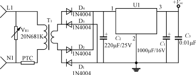 現xian在zai,大da部bu分fen供gong電dian部bu門men為wei防fang止zhi由you於yu電dian網wang零ling線xian接jie錯cuo而er損sun壞huai電dian度du表biao或huo人ren為wei采cai用yong過guo壓ya供gong電dian方fang法fa破po壞huai電dian度du表biao等deng問wen題ti,已yi要yao求qiu新xin安an裝zhuang的de單dan相xiang電dian度du表biao能neng夠gou承cheng受shou高gao壓ya(如380V電壓)一定時間(如4h)而不損壞,如果單相表的輸入電路不加處理,輸入的高壓將會使電度表在短時間內燒毀。隻要在變壓器輸入端串聯一隻合適的PTC熱敏電阻作過流保護,讓外部電壓主要加在PTC熱敏電阻上,則可保證線性變壓器不致發熱、損壞。為保證不發生誤動作,熱敏電阻的不動作電流應參考電度表的實際交流輸入電流選取,並留有50%餘量,居裏溫度應≥80℃;在最高工作溫度下,最大負荷工作時,電表不能被保護,而在最低工作溫度下,輸入端加入380V交流電時,電度表內的PTC應在很短時間內起保護作用,保證電表不被損壞,電路圖如圖4所示。