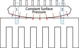 除TinyDIP/SMD外,SPM的表麵都會有一定的翹曲。圖4為(wei)這(zhe)種(zhong)翹(qiao)曲(qu)的(de)一(yi)個(ge)誇(kua)張(zhang)示(shi)意(yi)。模(mo)塊(kuai)是(shi)用(yong)一(yi)些(xie)從(cong)表(biao)麵(mian)中(zhong)間(jian)穿(chuan)出(chu)的(de)螺(luo)絲(si)緊(jin)固(gu)在(zai)散(san)熱(re)片(pian)上(shang)。如(ru)果(guo)安(an)裝(zhuang)恰(qia)當(dang),這(zhe)種(zhong)凸(tu)狀(zhuang)表(biao)麵(mian)能(neng)保(bao)證(zheng)有(you)足(zu)夠(gou)的(de)熱(re)量(liang)從(cong)模(mo)塊(kuai)傳(chuan)遞(di)到(dao)散(san)熱(re)片(pian)。如(ru)果(guo)緊(jin)固(gu)螺(luo)絲(si)用(yong)力(li)不(bu)均(jun),就(jiu)可(ke)能(neng)在(zai)模(mo)塊(kuai)內(nei)產(chan)生(sheng)應(ying)力(li),導(dao)致(zhi)模(mo)塊(kuai)破(po)損(sun)或(huo)性(xing)能(neng)下(xia)降(jiang)。建(jian)議(yi)采(cai)用(yong)圖(tu)4所示的螺絲緊固順序(先按1〜2的順序預緊固,再按2〜1的順序最終緊固)。通常,預緊固扭矩為最大額定緊固扭矩的25%。隻要散熱片與器件緊貼好了,就可通過SPM的內置熱敏電阻獲取散熱片的溫度,從而簡化電路板的設計。