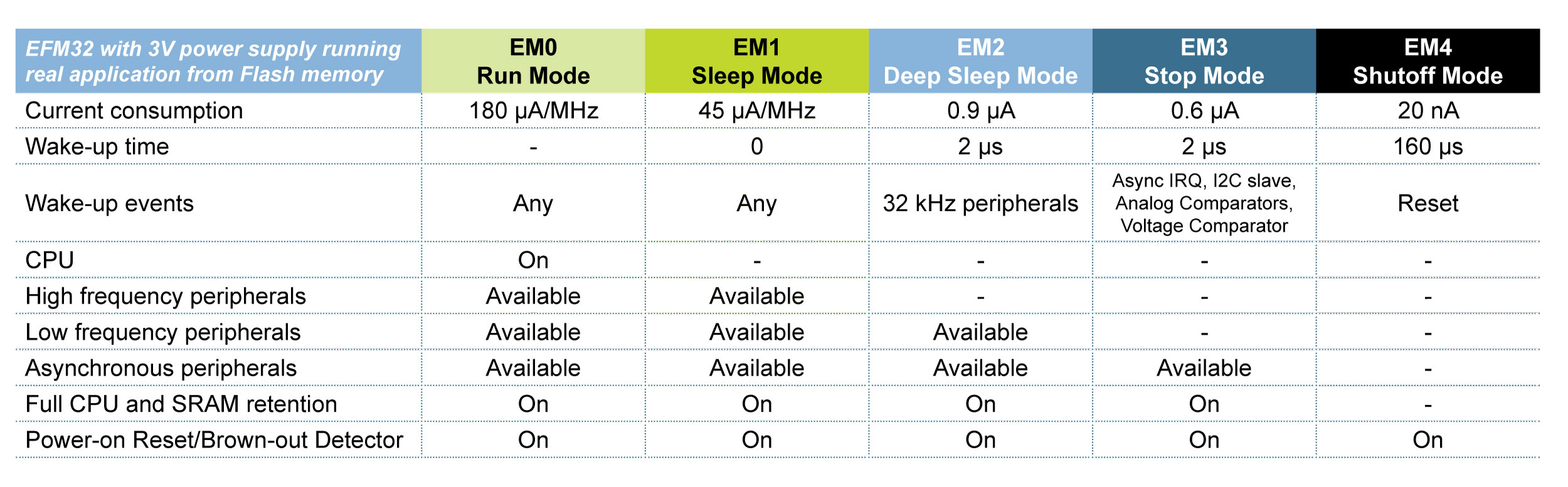 圖3. EFM32 Gecko微控製器的關鍵屬性是它提供給用戶的能源模式選擇
