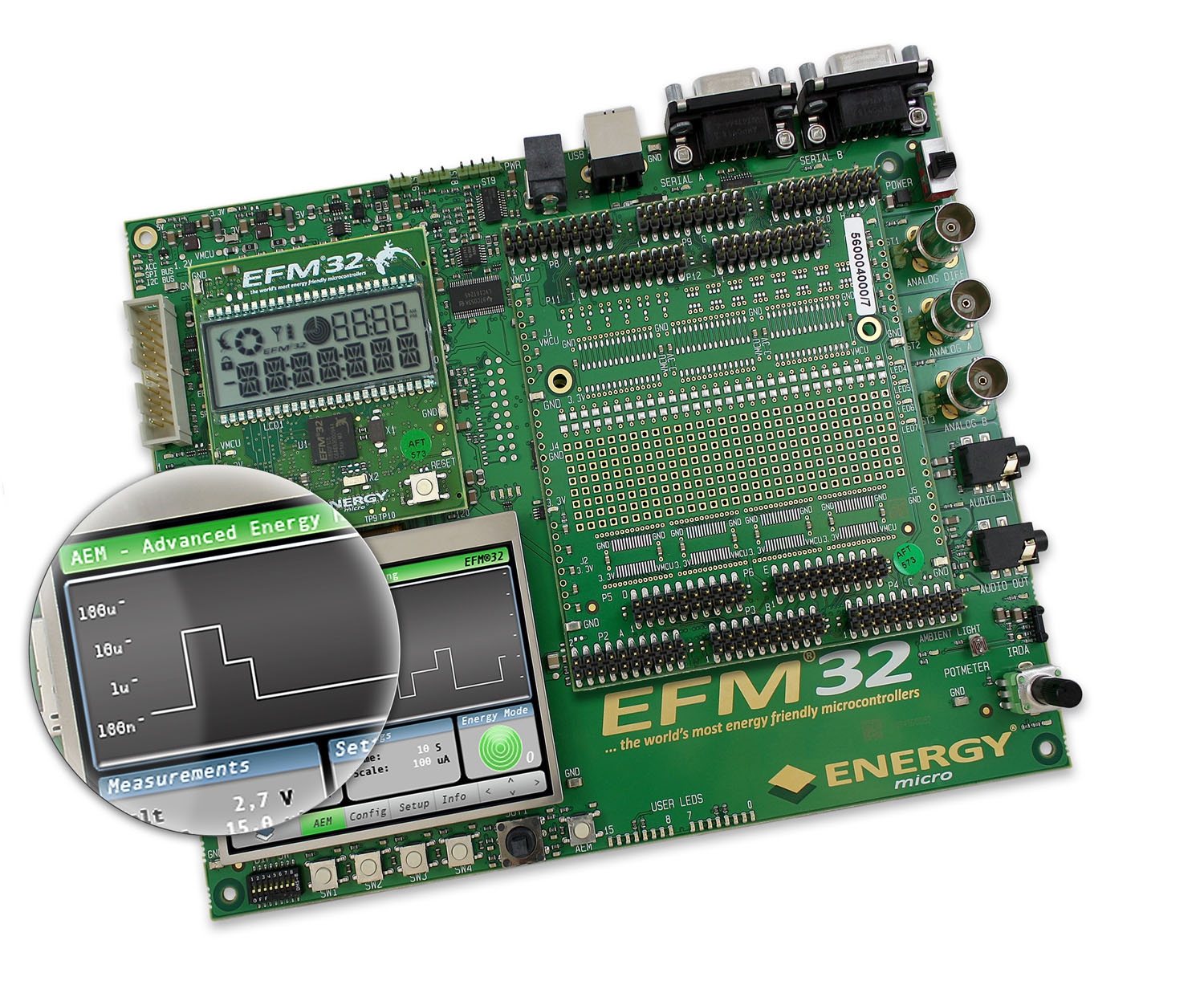 為了使開發者能夠最好使用最佳睡眠狀態,EFM32的開發工具包采用一個先進的能源監控係統來完成,這一設施使用一個從模擬到數字的轉換器來測量係列晶體管的下降電壓, 從cong而er不bu斷duan測ce量liang電dian源yuan軌gui上shang的de電dian流liu。這zhe種zhong測ce量liang方fang法fa被bei綜zong合he起qi來lai運yun用yong,準zhun確que地di描miao繪hui用yong了le一yi段duan時shi間jian的de電dian源yuan,使shi實shi際ji使shi用yong例li子zi的de低di功gong率lv運yun行xing得de到dao了le優you化hua。