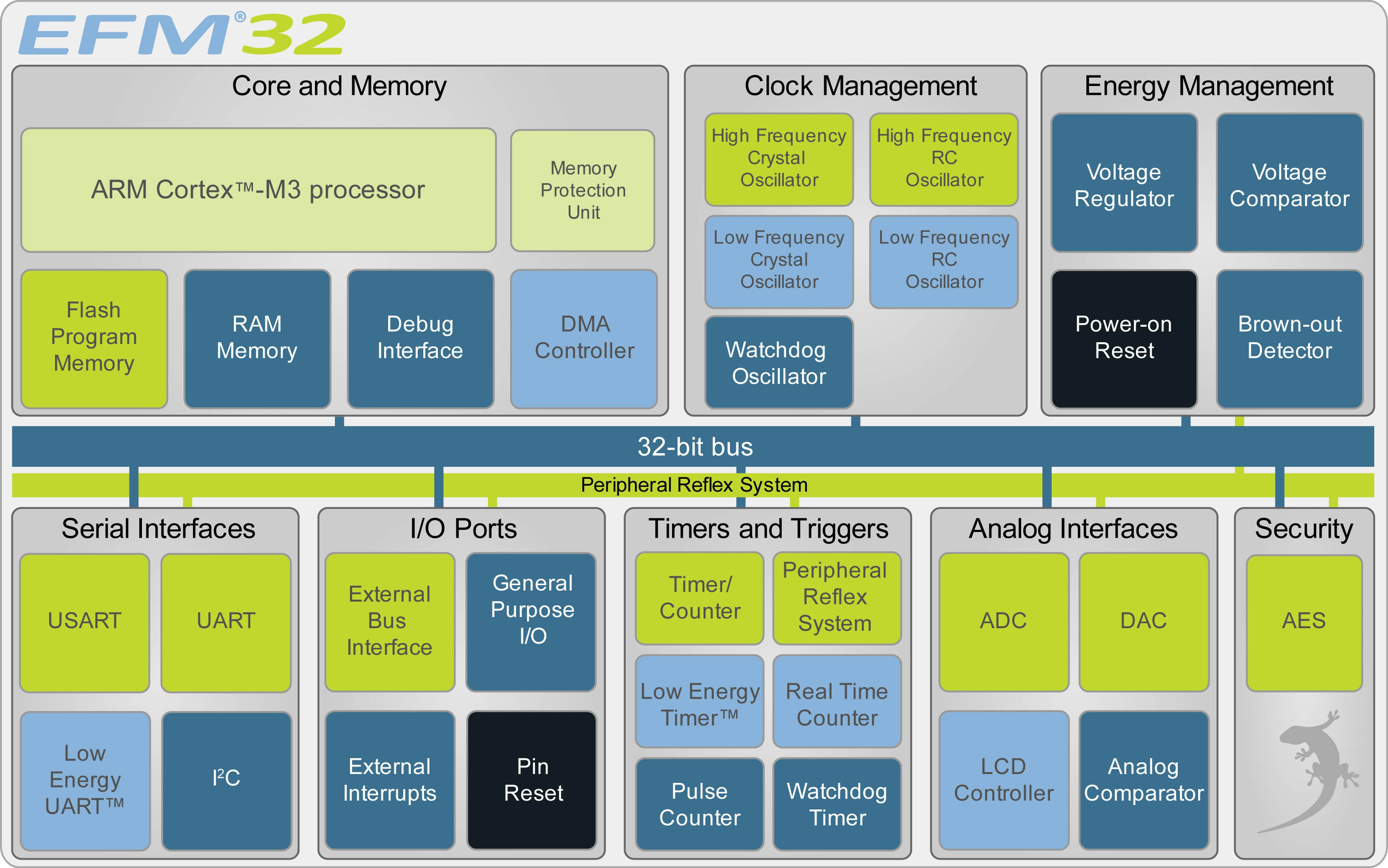 圖2:Energy Micro的ARM ®Cortex™- M3芯片結構是以EFM32 Gecko微控製器為基礎的。