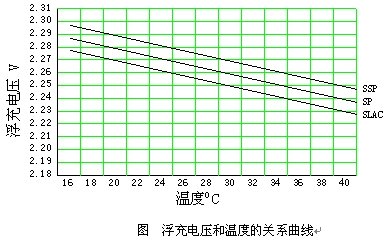在(zai)電(dian)源(yuan)係(xi)統(tong)中(zhong),電(dian)池(chi)總(zong)是(shi)在(zai)線(xian)備(bei)用(yong)工(gong)作(zuo)的(de),這(zhe)樣(yang)電(dian)池(chi)基(ji)本(ben)處(chu)於(yu)長(chang)期(qi)的(de)浮(fu)充(chong)狀(zhuang)態(tai)中(zhong),浮(fu)充(chong)電(dian)壓(ya)的(de)選(xuan)取(qu)對(dui)電(dian)池(chi)的(de)長(chang)期(qi)可(ke)靠(kao)運(yun)行(xing)起(qi)著(zhe)至(zhi)關(guan)重(zhong)要(yao)的(de)作(zuo)用(yong),正(zheng)如(ru)前(qian)麵(mian)看(kan)到(dao)的(de),偏(pian)高(gao)的(de)浮(fu)充(chong)電(dian)壓(ya)會(hui)造(zao)成(cheng)電(dian)池(chi)緩(huan)慢(man)失(shi)水(shui)並(bing)發(fa)產(chan)生(sheng)熱(re)失(shi)控(kong)而(er)使(shi)電(dian)池(chi)失(shi)效(xiao);偏低的浮充電壓會造成電池長期處於充不飽電的狀態,使電池發生硫酸化而導致電池失效。正確的浮充電壓一般應選在2.23V/單體.,bingyingsuitongdianchigongzuowendujinxingxiangyingtiaozheng,youyudianchishengchanchangjiadebutong,zheyicanshuhuiyouyixiechayi,yingyangeanzhaochangjiatigongdecanshuxuanqu。xiatushimouchangjiadianchifuchongdianyatongwendudeguanxiquxian。