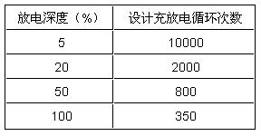 表1:蓄電池放電深度與使用壽命之間的關係(25℃)