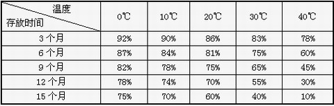 表2:蓄電池存放時間與環境溫度對容量的影響