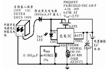 充電芯片選用美信半導體公司的鋰電池充電芯片,這款充電芯片具有很強的充電控製特性,可外接限流型充電電源和P溝(gou)道(dao)場(chang)效(xiao)應(ying)管(guan),能(neng)對(dui)單(dan)節(jie)鋰(li)電(dian)池(chi)進(jin)行(xing)安(an)全(quan)有(you)效(xiao)的(de)快(kuai)充(chong)。其(qi)最(zui)大(da)特(te)點(dian)是(shi)在(zai)不(bu)使(shi)用(yong)電(dian)感(gan)的(de)情(qing)況(kuang)下(xia)仍(reng)能(neng)做(zuo)到(dao)很(hen)低(di)的(de)功(gong)率(lv)耗(hao)散(san),且(qie)充(chong)電(dian)控(kong)製(zhi)精(jing)度(du)達(da)0.75%;可以實現預充電;具有過壓保護和溫度保護功能,其浮充方式能夠充至最大電池容量。