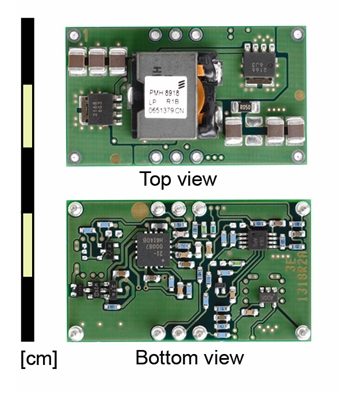 PMH8918LPOL穩壓器的尺寸為38.1x22.1x9.0mm。通孔版的圖片如圖1左所示。