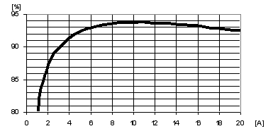 圖3、4、5中的曲線分別為上述三種設計的效率與輸出電流的關係。每組數據都是在輸入電壓為12V,輸出電壓為3.3V以及環境溫度為25℃的條件下獲得的。比較20A的數字設計和18A的模擬設計,發現盡管數字模塊的尺寸小了許多,但數字設計在全部的負載範圍上的效率都得到了改善。在半負載點上,數字POL穩壓器的效率改善了1.1%(為93.8%),而在滿負載點上效率提高了1.2%(達到92.5%)。數字設計效率的改善主要歸功於輔助電路的減少、空閑時間控製以及更優化的功率傳遞。