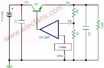 圖1基本的線性穩壓器三端可調穩壓器的輸出電壓如圖2所示