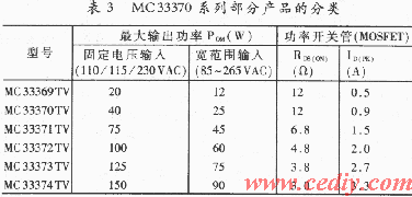 MC33370係列包括MC33369~MC33374五種規格、17種型號。以TO-220五腳直彎式封裝為例,其產品分類見表3。