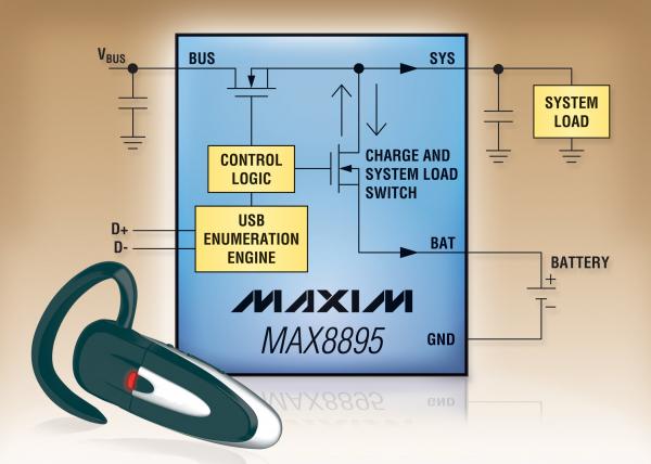 MAX8895:Maxim推出業內首款自動USB枚舉功能的電池充電器