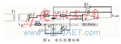 電壓檢測主要用來實時檢測常用和備用電源的電壓。PIC16F884單片機有14通道的10位A/D轉換器,可以滿足電壓采樣的精度。由於PIC16F884單片機隻能對0~5V間的單極性電壓進行檢測,故需要對交流電壓進行提升使它成為單極性的電壓信號。電壓檢測電路如圖4所示[1]。