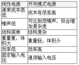 與傳統的線性電源相比,開關電源具有許多優點。在通常情況下,如果隻需要一個直流輸出,采用一個變壓器、整zheng流liu器qi和he濾lv波bo電dian容rong就jiu可ke構gou成cheng線xian性xing電dian源yuan。有you時shi,可ke采cai用yong一yi個ge線xian性xing穩wen壓ya器qi提ti供gong穩wen壓ya輸shu出chu。這zhe種zhong係xi統tong的de主zhu要yao優you點dian是shi簡jian單dan,所suo以yi成cheng本ben通tong常chang較jiao低di。而er開kai關guan電dian源yuan通tong常chang結jie構gou複fu雜za、價格昂貴,所以線性電源獲得了廣泛應用。表1列出了兩種係統的優點和缺點。