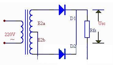 如果把整流電路的結構作一些調整,可以得到一種能充分利用電能的全波整流電路。下圖是全波整流電路的電原理圖。