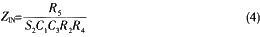 如果把Z4變換為阻抗為1/SC(其中S=jω)的虛擬元件,其它元件為電阻,則驅動點的阻抗為: