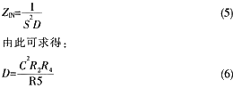 通用阻抗變換器(GIC)的典型電路如圖1所示,其驅動點阻抗ZIN可以表示為: