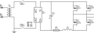從圖3可(ke)以(yi)看(kan)出(chu),為(wei)了(le)防(fang)止(zhi)主(zhu)電(dian)路(lu)整(zheng)流(liu)側(ce)過(guo)流(liu)損(sun)壞(huai),在(zai)變(bian)壓(ya)器(qi)副(fu)邊(bian)設(she)置(zhi)了(le)空(kong)氣(qi)開(kai)關(guan)。在(zai)此(ci)需(xu)要(yao)說(shuo)明(ming)的(de)是(shi),此(ci)開(kai)關(guan)不(bu)能(neng)設(she)置(zhi)在(zai)變(bian)壓(ya)器(qi)原(yuan)邊(bian),以(yi)避(bi)免(mian)因(yin)勵(li)磁(ci)湧(yong)流(liu)而(er)誤(wu)動(dong)作(zuo)。在(zai)逆(ni)變(bian)部(bu)分(fen)還(hai)加(jia)入(ru)了(le)小(xiao)電(dian)感(gan),以(yi)防(fang)止(zhi)電(dian)流(liu)變(bian)化(hua)造(zao)成(cheng)的(de)損(sun)壞(huai),串(chuan)入(ru)快(kuai)速(su)熔(rong)斷(duan)器(qi)作(zuo)為(wei)晶(jing)體(ti)管(guan)過(guo)電(dian)流(liu)保(bao)護(hu)的(de)後(hou)備(bei)保(bao)護(hu)。