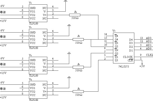 在圖6中,AD0—AD3為低四位數據總線,CLK2為譯碼器與單片機讀寫信號配合給出的觸發信號。在測量過程中,當需要改變電源的狀態時,直接將數據寫入到74LS175中zhong並bing鎖suo存cun,就jiu可ke以yi據ju此ci控kong製zhi各ge個ge橋qiao臂bi的de導dao通tong與yu關guan斷duan。在zai此ci需xu要yao注zhu意yi的de是shi,在zai調tiao試shi過guo程cheng中zhong一yi定ding不bu要yao給gei出chu錯cuo誤wu的de數shu據ju,造zao成cheng橋qiao臂bi直zhi通tong,從cong而er使shi得deMOSFET永久損壞。