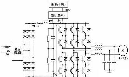 圖2.具有直流放電製動裝置的IGBT直接串聯高壓變頻器主電路圖
