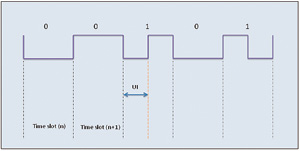 S/PDIF協議——rushangwensuoshu,tashiyizhongdanxianchuanxingjiekou,shizhongqianrushujuzhizhong。chuanshudeshujucaiyongshuangxiangbiaojibianma。shizhonghezhentongbuxinhaozaijieshouqiduanyushuangxiangjiemashujuliuyitonghuifu。shujuliuzhongdemeigeshujuweidouyouyigeshixi。shixiyiyigeyueqiankaishi,bingyiyigeyueqianjieshu。ruguochuanshudeshujuweishi“1”,則時隙中間還會增加一個躍遷。數據位“0”則不需要額外躍遷,躍遷之間的最短間隔稱為單位間隔(UI)。