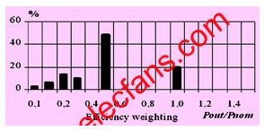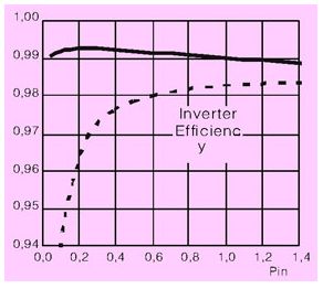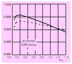 對(dui)於(yu)傳(chuan)統(tong)電(dian)力(li)電(dian)子(zi)裝(zhuang)置(zhi)的(de)設(she)計(ji),我(wo)們(men)通(tong)常(chang)是(shi)通(tong)過(guo)每(mei)千(qian)瓦(wa)多(duo)少(shao)錢(qian)來(lai)衡(heng)量(liang)其(qi)性(xing)價(jia)比(bi)的(de)。但(dan)是(shi)對(dui)於(yu)光(guang)伏(fu)逆(ni)變(bian)器(qi)的(de)設(she)計(ji)而(er)言(yan),對(dui)最(zui)大(da)功(gong)率(lv)的(de)追(zhui)求(qiu)僅(jin)僅(jin)是(shi)處(chu)於(yu)第(di)二(er)位(wei)的(de),歐(ou)洲(zhou)效(xiao)率(lv)的(de)最(zui)大(da)化(hua)才(cai)是(shi)最(zui)重(zhong)要(yao)的(de)。因(yin)為(wei)對(dui)於(yu)光(guang)伏(fu)逆(ni)變(bian)器(qi)而(er)言(yan),不(bu)僅(jin)最(zui)大(da)輸(shu)出(chu)功(gong)率(lv)的(de)增(zeng)加(jia)可(ke)以(yi)轉(zhuan)化(hua)為(wei)經(jing)濟(ji)效(xiao)益(yi),歐(ou)洲(zhou)效(xiao)率(lv)的(de)提(ti)高(gao)同(tong)樣(yang)可(ke)以(yi),而(er)且(qie)更(geng)加(jia)明(ming)顯(xian)。歐(ou)洲(zhou)效(xiao)率(lv)的(de)定(ding)義(yi)不(bu)同(tong)於(yu)我(wo)們(men)通(tong)常(chang)所(suo)說(shuo)的(de)平(ping)均(jun)效(xiao)率(lv)或(huo)者(zhe)最(zui)高(gao)效(xiao)率(lv)。它(ta)充(chong)分(fen)考(kao)慮(lv)了(le)太(tai)陽(yang)光(guang)強(qiang)度(du)的(de)變(bian)化(hua),更(geng)加(jia)準(zhun)確(que)地(di)描(miao)述(shu)了(le)光(guang)伏(fu)逆(ni)變(bian)器(qi)的(de)性(xing)能(neng)。歐(ou)洲(zhou)效(xiao)率(lv)是(shi)由(you)不(bu)同(tong)負(fu)載(zai)情(qing)況(kuang)下(xia)的(de)效(xiao)率(lv)按(an)照(zhao)不(bu)同(tong)比(bi)重(zhong)累(lei)加(jia)得(de)到(dao)的(de),其(qi)中(zhong)半(ban)載(zai)的(de)效(xiao)率(lv)占(zhan)其(qi)最(zui)大(da)組(zu)成(cheng)部(bu)分(fen)(見圖1)。