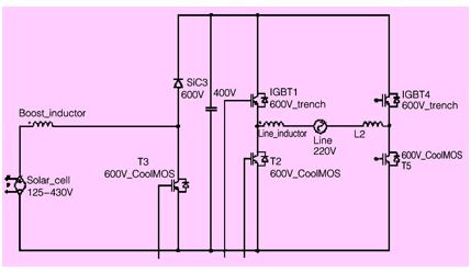 我們推薦使用功率模塊來設計光伏逆變器,因為把圖3拓撲結構上的所有器件集成到一個模塊裏麵可以提供以下優點: