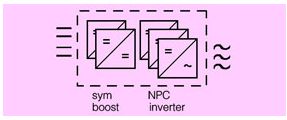 這裏標準的應用是使用三相全橋電路。考慮到直流母線電壓會達到1000v,那開關器件就必須使用1200v的。而我們知道,1200v功率器件的開關速度會比600v器件慢很多,這就會增加損耗,影響效率。對於這種應用,一個比較好的替代方案是使用中心點箝位(npc=neutral point clamped)的拓撲結構(見圖8)。這樣就可以使用600v的器件取代1200v的器件。
