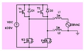 由於上橋臂的igbt工作在50hz的開關頻率下,實際上並不需要對該支路進行濾波。因此對電路拓撲進行優化,可以得到圖14所示的發射極開路型拓撲。這種拓撲的優點是隻有有高頻電流經過的支路才有濾波電感,從而減小了輸出濾波電路的損耗。