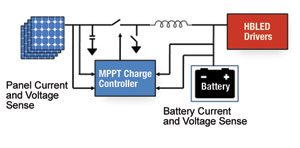 在另一個實例中,ST微電子開發了一個高度集成的HBLED太陽能MPPT充電器/驅動器。這個全集成的方案帶有MPPT優化的電池充電器和集成的HBLED驅動器。這個產品將在2010年晚期發布,非常適合於HBLED街燈照明應用。