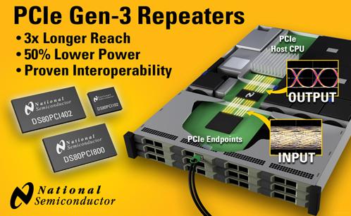 美國國家半導體公司宣布推出一係列全新的第三代(8Gbps)PCI Express®(PCIe)中繼器,它實現了無與倫比的信號調節性能且功耗極低,因此特別適用於數據中心服務器和存儲係統。