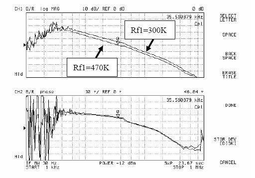 因此,當補償網絡進入係統環路之後,Rf1的作用是使環路增益的幅頻特性上下平移,同時環路增益的相頻特性保持不變。