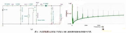 隻要加入L2及C2,波bo形xing便bian會hui變bian成cheng正zheng弦xian曲qu線xian,而er能neng量liang會hui重zhong新xin調tiao整zheng為wei相xiang當dang低di的de高gao頻pin率lv峰feng值zhi。不bu過guo,如ru果guo不bu能neng正zheng確que設she計ji輸shu入ru濾lv波bo器qi,則ze會hui將jiang噪zao聲sheng放fang大da而er使shi得de控kong製zhi回hui路lu不bu穩wen定ding。因yin此ci,了le解jie濾lv波bo器qi設she計ji的de概gai念nian,對dui於yu優you化hua濾lv波bo器qi回hui波bo及ji成cheng本ben相xiang當dang重zhong要yao。使shi用yongSPICE的AC分析是有效了解濾波器行為的工具。