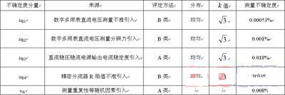 表1 各不確定度分量一覽表(3A測試點)