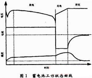 蓄電池在工作工程中主要具有3種工作狀態:放電狀態、充電狀態和浮充狀態。處於放電狀態時,蓄電池將儲蓄的化學能轉化為電能供給負載;充電狀態是在蓄電池放電之後進行能量儲蓄的狀態,此種狀態下電能轉化為化學能存儲起來;浮充狀態則是蓄電池維持一定化學能存儲量所要保持的工作狀態,浮充狀態下的蓄電池的儲能不會因為自放電而損失。放電、充電、浮充電3個ge狀zhuang態tai構gou成cheng蓄xu電dian池chi的de一yi個ge完wan整zheng的de工gong作zuo循xun環huan。傳chuan統tong的de充chong電dian器qi采cai用yong串chuan聯lian充chong電dian方fang式shi,通tong過guo各ge個ge電dian池chi的de電dian流liu都dou是shi一yi樣yang的de。盡jin管guan采cai用yong了le三san段duan式shi的de充chong電dian方fang法fa,但dan是shi充chong電dian時shi能neng控kong製zhi的de電dian壓ya隻zhi是shi電dian池chi組zu的de串chuan聯lian電dian壓ya,仍reng然ran伴ban有you電dian池chi組zu充chong電dian不bu均jun衡heng並bing且qie擴kuo大da的de現xian象xiang。蓄xu電dian池chi工gong作zuo狀zhuang態tai曲qu線xian如ru圖tu1所示。因此在此基礎上采用一種新的解決方法。