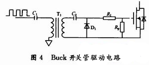 為了減小DB的反向恢複電流,進一步減少存儲進驅動電源的電荷量,本文中的DB采用快速恢複二極管。Buck電路開關管的驅動電路,如圖4所示。