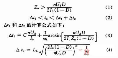 式中:Zn為特性阻抗,;D為開關管Q1的占空比;C為開關管Q1和Q2的寄生電容;ωk為諧振角頻率;Lk為變壓器初級漏感;I0為負載總電流;td為死區時間;n為變壓器初、次級匝比。