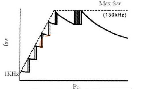 降低開關電源功耗的主要途徑是降低開關損耗和控製電路功耗。減少控製電路功耗可通過選擇功耗低、功能強、所suo需xu外wai部bu元yuan件jian少shao的de控kong製zhi芯xin片pian及ji簡jian化hua外wai部bu控kong製zhi電dian路lu來lai實shi現xian。這zhe裏li主zhu要yao討tao論lun降jiang低di開kai關guan損sun耗hao的de措cuo施shi。許xu多duo電dian子zi產chan品pin在zai使shi用yong中zhong常chang處chu於yu輕qing載zai或huo待dai機ji狀zhuang態tai,而er開kai關guan電dian源yuan*率(lv)開(kai)關(guan)管(guan)的(de)開(kai)關(guan)頻(pin)率(lv)都(dou)很(hen)高(gao),當(dang)開(kai)關(guan)電(dian)源(yuan)工(gong)作(zuo)在(zai)輕(qing)載(zai)或(huo)待(dai)機(ji)狀(zhuang)態(tai)下(xia)時(shi),開(kai)關(guan)損(sun)耗(hao)成(cheng)為(wei)主(zhu)要(yao)損(sun)耗(hao),相(xiang)對(dui)損(sun)耗(hao)大(da)大(da)增(zeng)加(jia),效(xiao)率(lv)降(jiang)低(di)。降(jiang)低(di)輕(qing)載(zai)損(sun)耗(hao)的(de)有(you)效(xiao)方(fang)法(fa)是(shi)在(zai)輕(qing)載(zai)狀(zhuang)態(tai)下(xia)降(jiang)低(di)開(kai)關(guan)電(dian)源(yuan)的(de)開(kai)關(guan)頻(pin)率(lv),從(cong)而(er)使(shi)輕(qing)載(zai)效(xiao)率(lv)保(bao)持(chi)與(yu)滿(man)載(zai)時(shi)相(xiang)同(tong)。圖(tu)1中,隔離變換控製電路采用準諧振電源控製器FA5531P及外圍元件構成。FA5531Pdekaiguanpinlvbushiyoutajizhendangqijuedingdegudingkaiguanpinlv,ershiyouzijizhendangjueding。xinpianzaizhengchangfuzaishibaochigudingpinlvdezhunxiezhenkaiguanzhuangtai,qingzaishizidongjiangdikaiguanpinlvyijianshaokongzaisunhao,zuidikaiguanpinlvkejiangzhi1KHz,FA5531P開關頻率與輸出功率關係如圖3所示。FA5531P的另一個特點是具有內部啟動電路,從而也降低了待機功耗。FA5531P自身功耗很低,工作電流僅1.5mA,集成度高,隻需極少的外部元件。