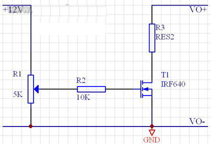 圖中R3 表示一個能產生兩倍於額定負載的電流(即此時R3 的阻值為額定負載的一半),VO+和VO-分別接開關電源的輸出正端和負端。