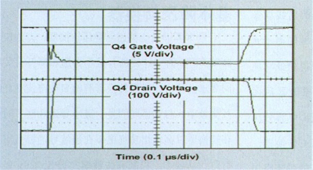 圖 3 一個開關周期的Q4柵極和漏極電壓