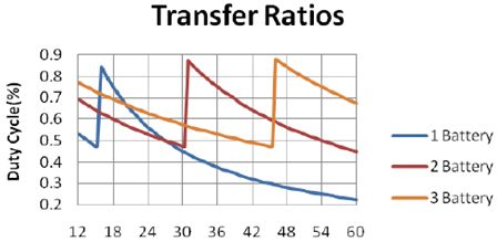 圖4:多個電池降壓和升壓模式之間的傳遞比[page]