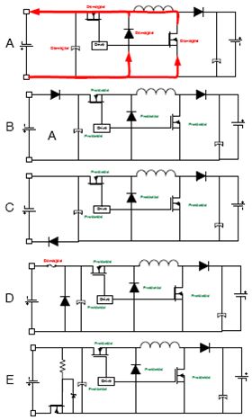 四開關非反相降壓-升壓有兩種操作模式,即降壓模式和降壓-升壓模式。在降壓模式下,轉換器產生輸入電壓脈衝,它經過LC濾波來產生一個較低的直流輸出電壓。輸出電壓可以通過修改相對於開關周期或開關頻率的導通時間來改變。