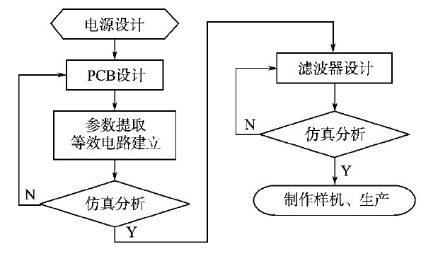 如果以上所有降低EMI的措施都完成了還沒有達到EMC的de標biao準zhun,就jiu可ke以yi根gen據ju前qian麵mian仿fang真zhen分fen析xi得de到dao的de差cha模mo和he共gong模mo幹gan擾rao的de波bo形xing對dui濾lv波bo器qi進jin行xing設she計ji。在zai設she計ji濾lv波bo器qi的de時shi候hou,也ye同tong樣yang要yao注zhu意yi元yuan件jian的de布bu局ju,還hai有youPCB寄生參數對濾波器阻抗的影響,其本質也是增大對幹擾的阻抗,使幹擾無法通過傳播路徑。開關電源設計流程如圖5所示。
