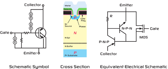 很多年前,IGBT就已成為點火應用中的開關。圖2所示為IGBT的剖麵圖。較之於其它技術,IGBT有如下一些重要優點: