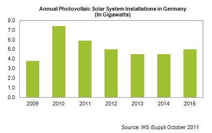 - 2011年德國光伏安裝量預計為5.9GW,較去年下降20.4%