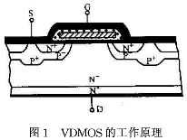 VDMOSFET是電壓控製器件,在柵極施加一定的電壓,使器件溝道表麵反型,形成連接源區和漏區的導電溝道。基本工作原理如圖1。