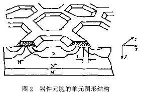 功率VDMOSFET由you很hen多duo小xiao元yuan胞bao單dan元yuan並bing聯lian組zu成cheng。而er由you於yu柵zha極ji多duo晶jing矽gui電dian阻zu的de存cun在zai,使shi得de在zai一yi定ding的de柵zha極ji偏pian壓ya下xia,離li柵zha極ji壓ya焊han點dian較jiao遠yuan的de元yuan胞bao溝gou道dao不bu能neng充chong分fen開kai啟qi。因yin此ci,為wei了le降jiang低di柵zha電dian極ji材cai料liao電dian阻zu的de影ying響xiang,通tong常chang將jiang柵zha極ji壓ya焊han點dian處chu的de金jin屬shu引yin伸shen到dao離li壓ya焊han點dian較jiao遠yuan的de元yuan胞bao單dan元yuan處chu。本ben文wen所suo設she計ji的de功gong率lv管guan從cong壓ya焊han點dian處chu引yin伸shen3條金屬條並與下麵的多晶矽相接觸。