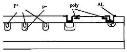 - VDMOSFET采用“5個場限環+鋁場板+多晶場板”的終端結構