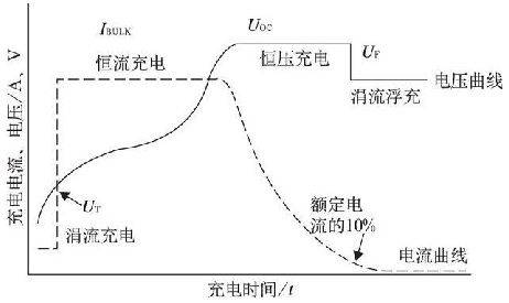 當蓄電池電壓低於充電使能電壓UT , 充電器提供很小的涓流IT 進行充電, IT 一般約為0. 01C( C 為蓄電池容量)