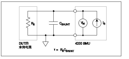 測(ce)量(liang)電(dian)路(lu)的(de)建(jian)立(li)時(shi)間(jian)在(zai)測(ce)量(liang)小(xiao)電(dian)流(liu)和(he)高(gao)電(dian)阻(zu)時(shi)尤(you)其(qi)重(zhong)要(yao)。建(jian)立(li)時(shi)間(jian)是(shi)指(zhi)施(shi)加(jia)或(huo)改(gai)變(bian)電(dian)流(liu)或(huo)電(dian)壓(ya)後(hou)測(ce)量(liang)達(da)到(dao)穩(wen)定(ding)的(de)時(shi)間(jian)。影(ying)響(xiang)測(ce)量(liang)電(dian)路(lu)建(jian)立(li)時(shi)間(jian)的(de)因(yin)素(su)包(bao)括(kuo)並(bing)聯(lian)電(dian)容(rong)(CSHUNT)和源電阻(RS)。並聯電容是由於連接電纜、測試夾具、開關和探針造成的。DUT的源電阻越高,建立時間越長。圖6的測量電路中標出了並聯電容和源電阻。
