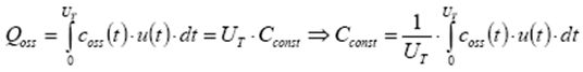 通過對電流波形的三角形形狀和MOSFET的恒定輸出電容的粗略估算,可以計算出MOSFET關斷過程產生的電量。如果電流換向受到電感的限製(大多數應用都是這樣),則可假定電流波形為三角形形狀。要計算在特定變壓器電壓UT條件下,MOSFET的等效恒定電容Cconst,必須知道時變非線性輸出電容coss(t):