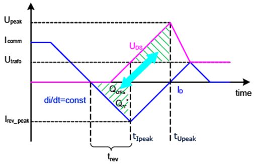 要計算MOSFET關斷過程中的開關損耗,必須首先確定反向電流峰值Irev_peak: